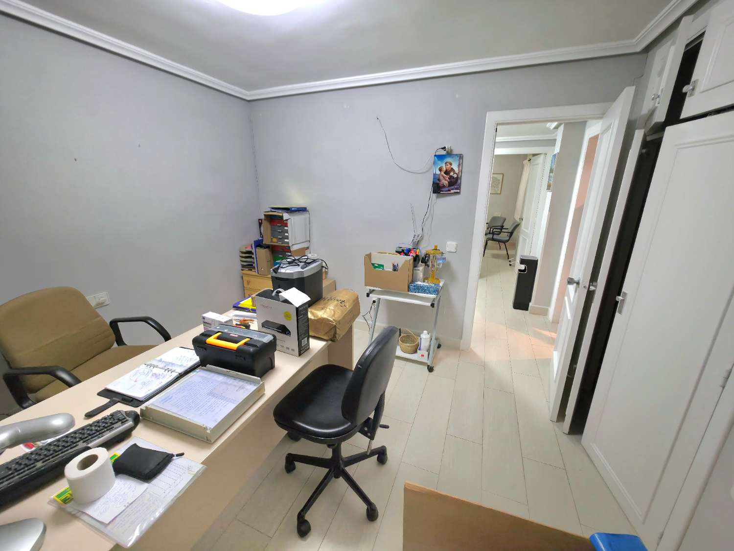 En la actualidad, el piso se encuentra dividido en dos espacios diferenciados. Una parte del inmueble se ha adaptado como espacio profesional, contando con licencia para el desarrollo de actividades del ámbito sanitario, y se distribuye en sala de espera/recepción, despacho, consulta y baño. El resto del piso mantiene su configuración como vivienda, ofreciendo amplias estancias y una distribución muy funcional.