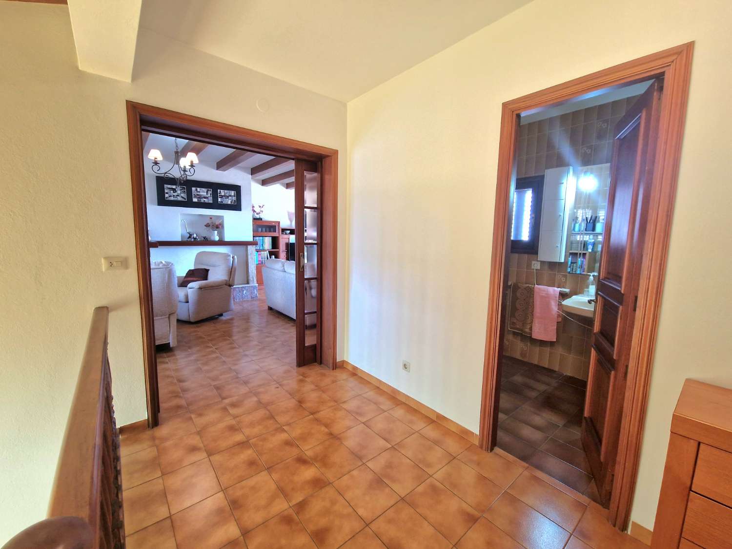 À l'étage se trouvent trois chambres, une salle de bains complète et un spacieux salon avec cheminée donnant sur la terrasse et le toit-terrasse, d'où vous pourrez admirer les spectaculaires couchers de soleil et la vue sur la mer.
